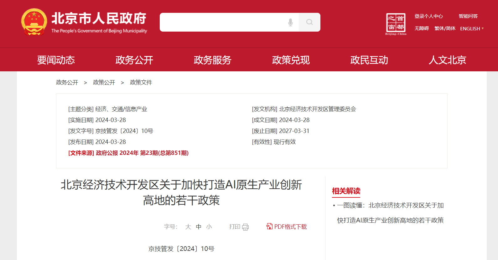 北京经济期间拓荒区对于加速打造AI原出产业翻新高地的几许政策